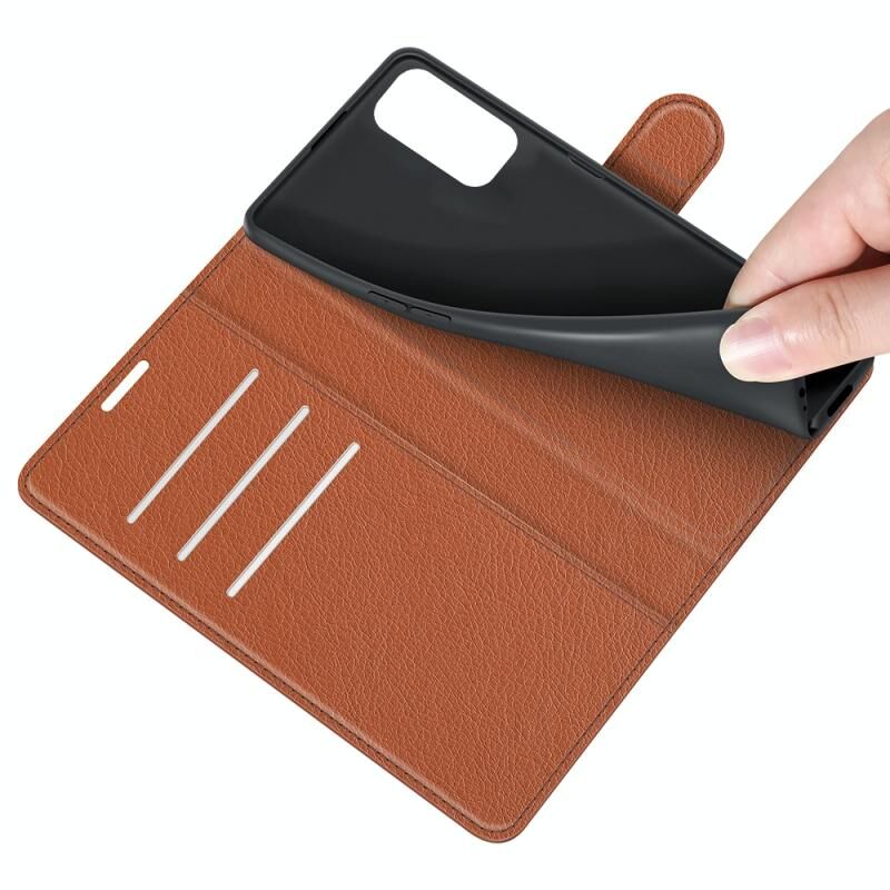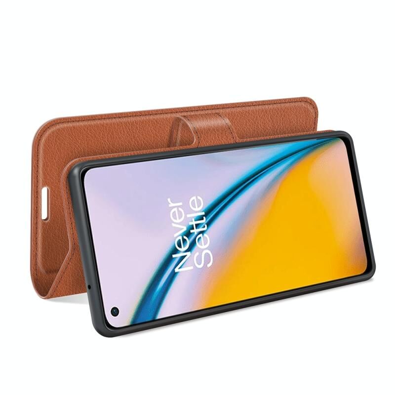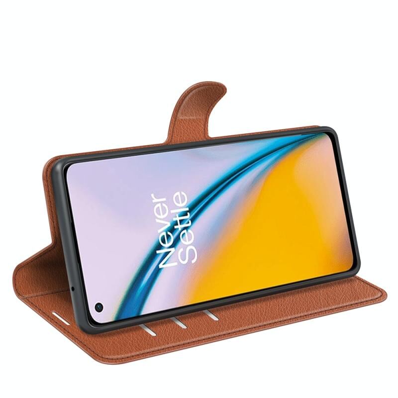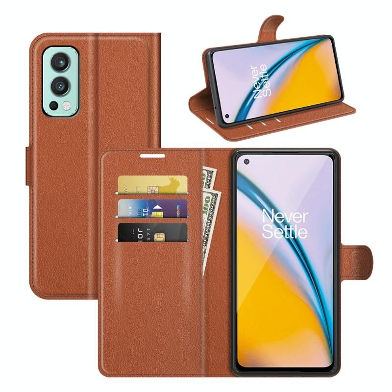 Για OnePlus Nord 2 5G Litchi Υφή Οριζόντια Flip προστατευτική θήκη με κάτοχο & υποδοχές για κάρτες & πορτοφόλι (καφέ)