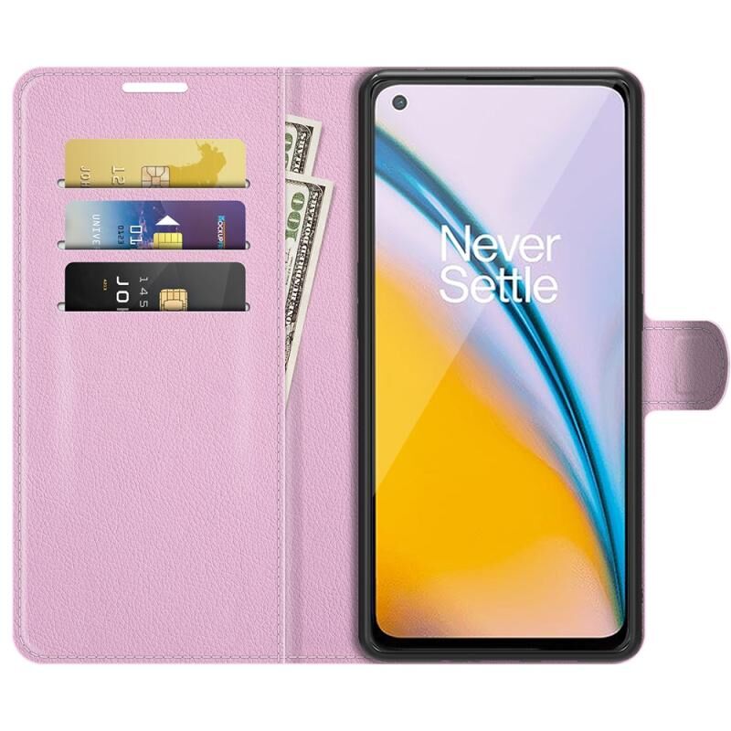 Για OnePlus Nord 2 5G Litchi Υφή Οριζόντια Flip προστατευτική θήκη με κάτοχο & υποδοχές για κάρτες & πορτοφόλι (ροζ)