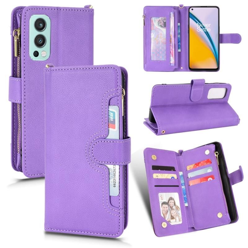 Για OnePlus Nord 2 5G Litchi υφή φερμουάρ δερμάτινη θήκη τηλεφώνου (μωβ)