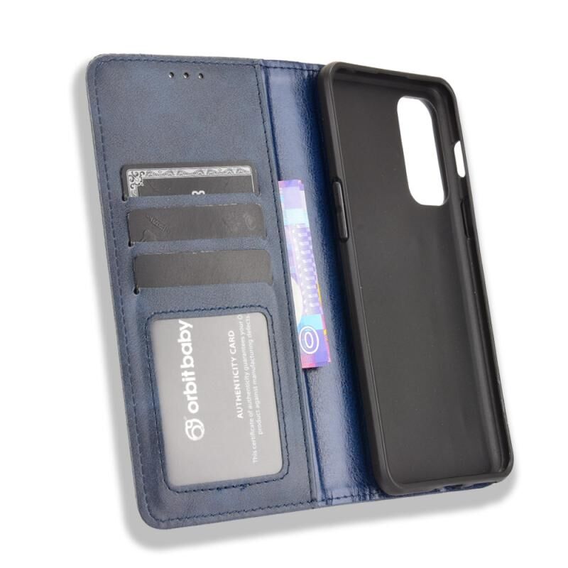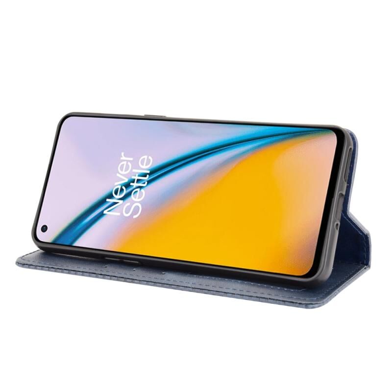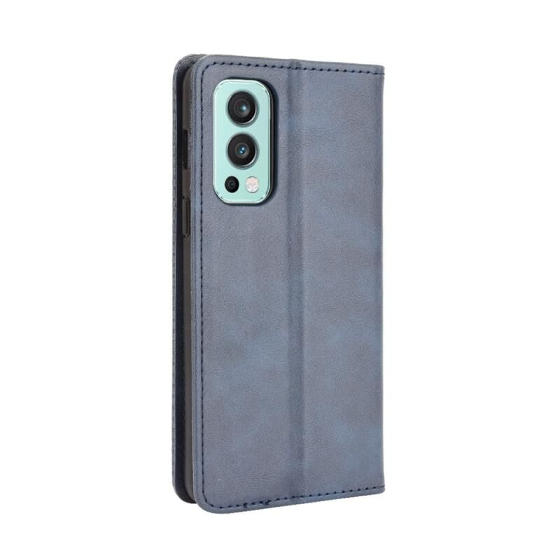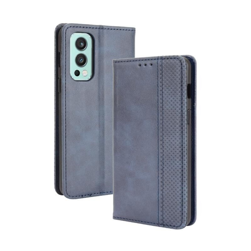 Για OnePlus Nord 2 5G Μαγνητική πόρπη Retro Crazy Horse Υφή Οριζόντια Flip δερμάτινη θήκη με υποδοχή & υποδοχές καρτών & πλαίσιο φωτογραφιών (μπλε)