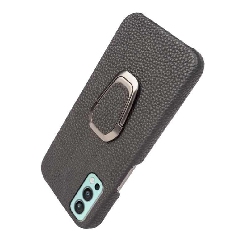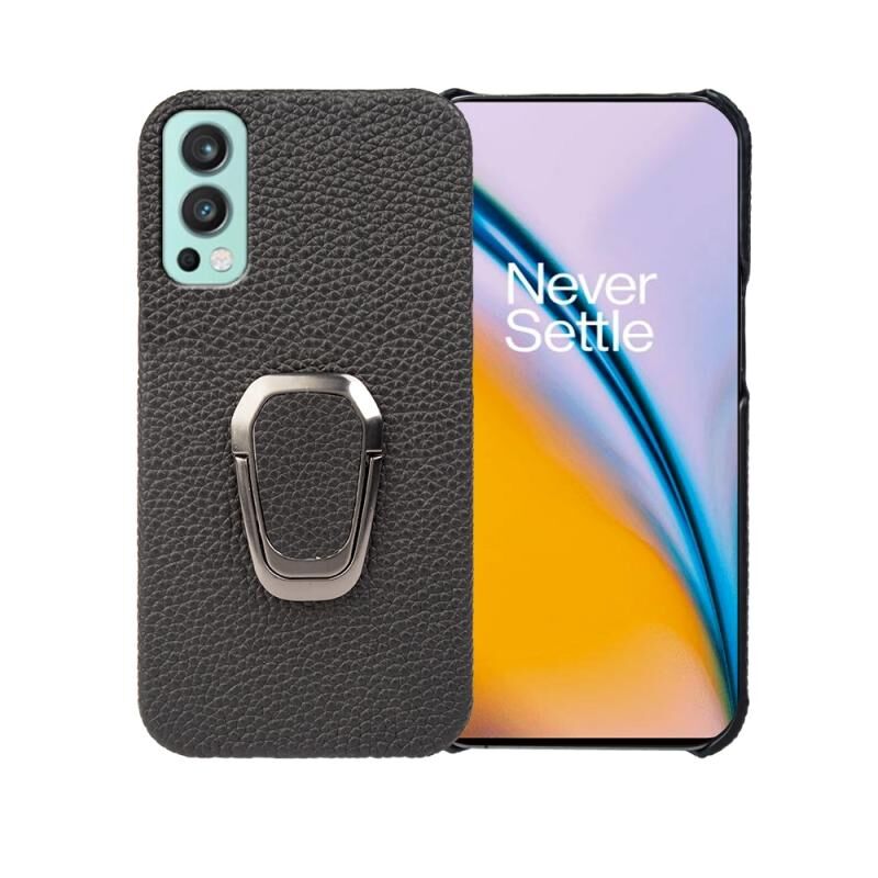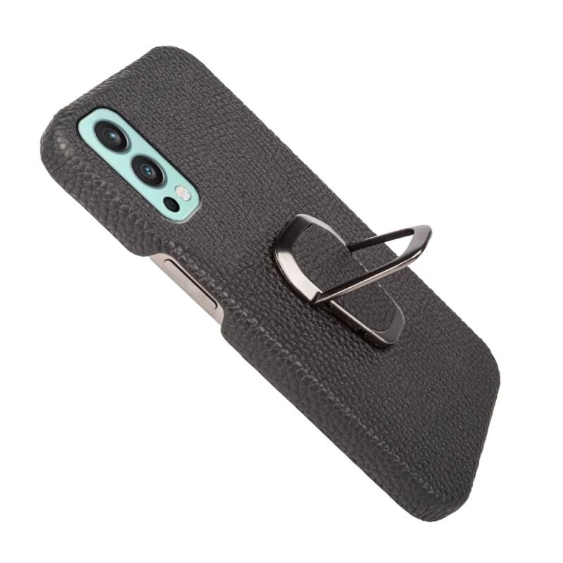 Για OnePlus Nord 2 5G δαχτυλίδι κάτοχος Litchi υφή γνήσιο δέρμα τηλέφωνο υπόθεση (μαύρο)