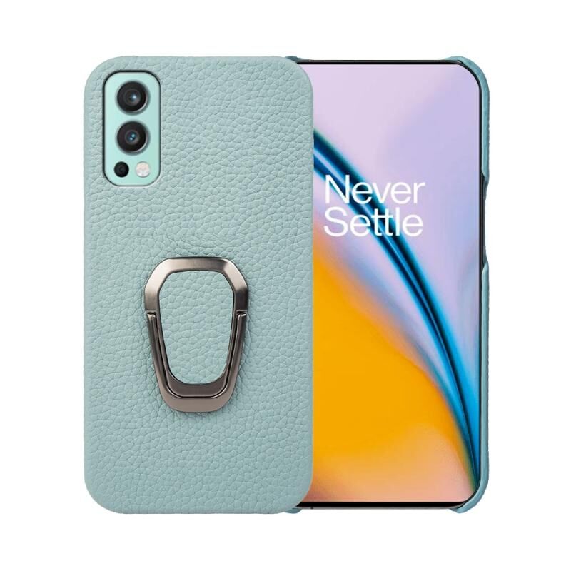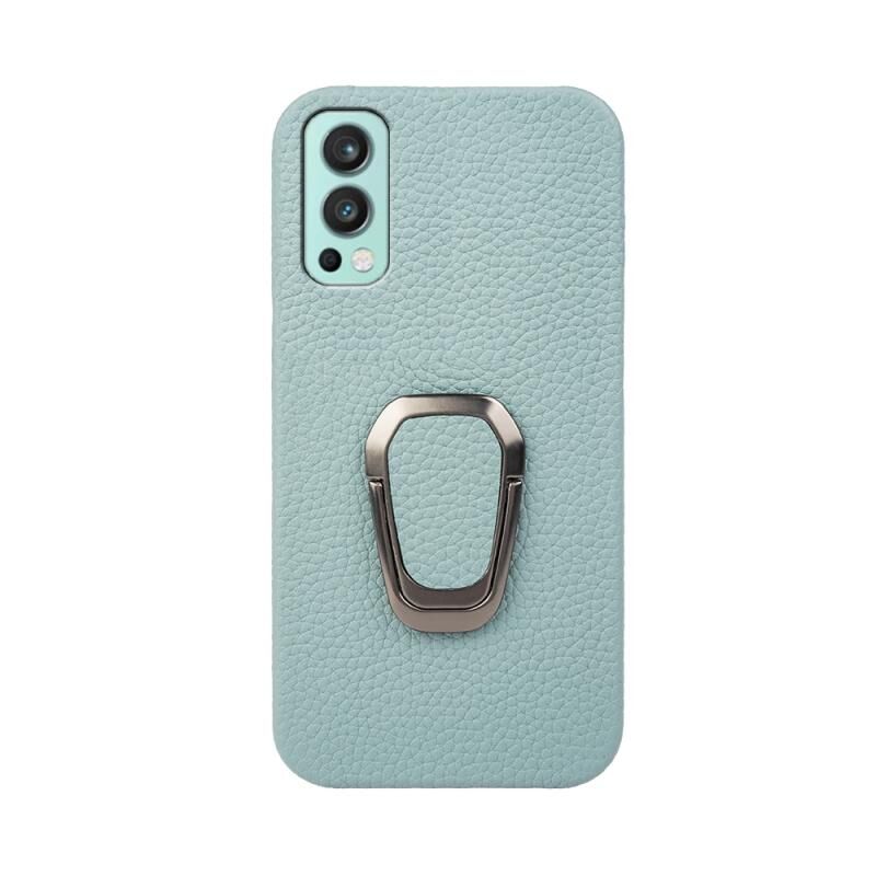 Για OnePlus Nord 2 5G δαχτυλίδι κάτοχος Litchi υφή γνήσιο δέρμα τηλέφωνο υπόθεση (Cyan)