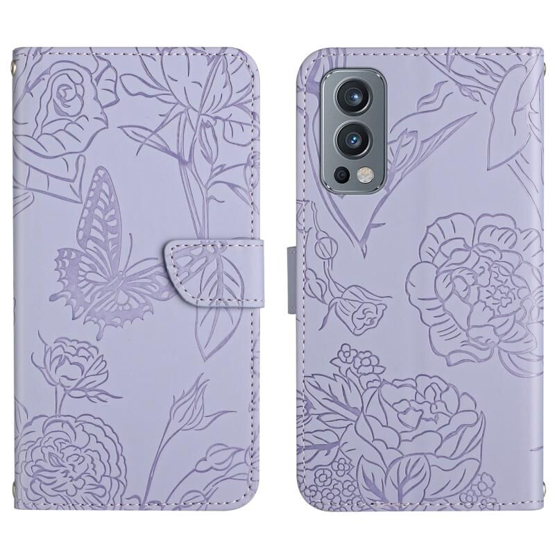 Θήκη τηλεφώνου από δέρμα με ανάγλυφο σχέδιο πεταλούδας και παιώνιας για OnePlus Nord 2 5G (Κόκκινο)