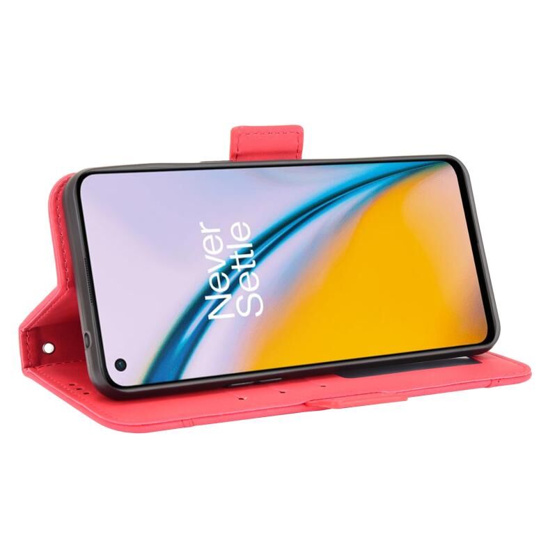 Για OnePlus Nord 2 5G δέρμα αίσθηση μοσχάρι μοτίβο οριζόντια Flip δερμάτινη θήκη με κάτοχο & υποδοχές καρτών & πλαίσιο φωτογραφιών (κόκκινο)
