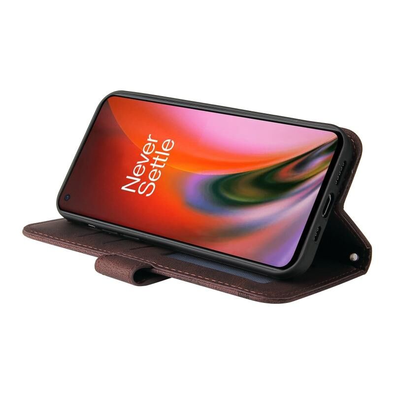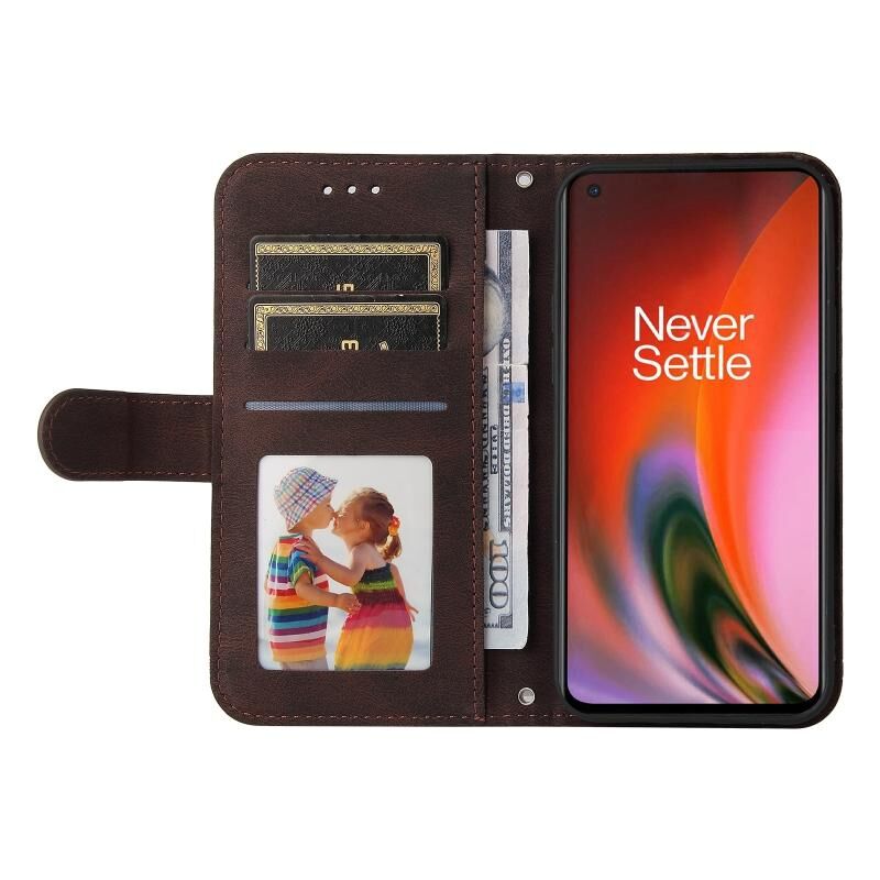 Για το OnePlus Nord 2 5G Skin Feel Life Tree Metal Button οριζόντια Flip δερμάτινη θήκη με κάτοχο & υποδοχή κάρτας & πορτοφόλι & πλαίσιο φωτογραφιών & λουράκι (καφέ)
