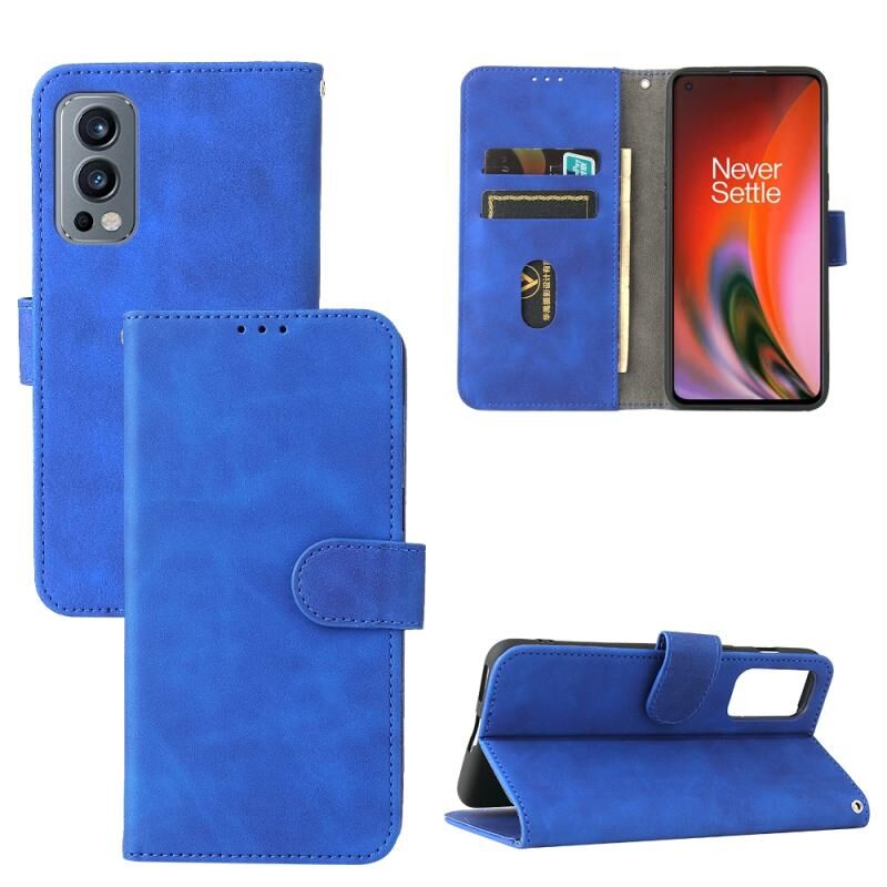 Για OnePlus Nord 2 5G Solid Color Skin Feel μαγνητική πόρπη οριζόντια Flip μοσχάρι υφή PU δέρμα υπόθεση με κάτοχο & υποδοχές καρτών & πορτοφόλι (μπλε)
