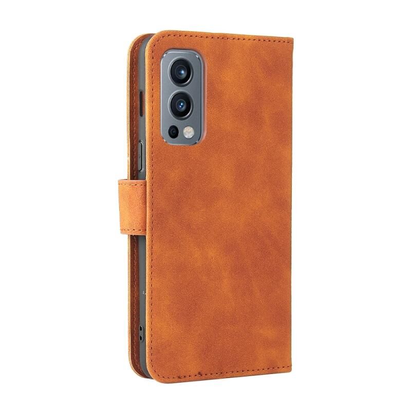 Για OnePlus Nord 2 5G Solid Color Skin Feel μαγνητική πόρπη οριζόντια Flip μοσχάρι υφή PU δέρμα υπόθεση με κάτοχο & υποδοχές καρτών & πορτοφόλι (καφέ)