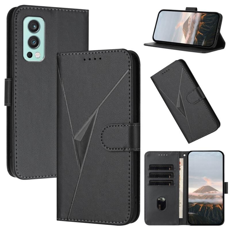 For OnePlus Nord 2 5G Triangle Pattern Buckle Clasp Leather Phone Case(Black)