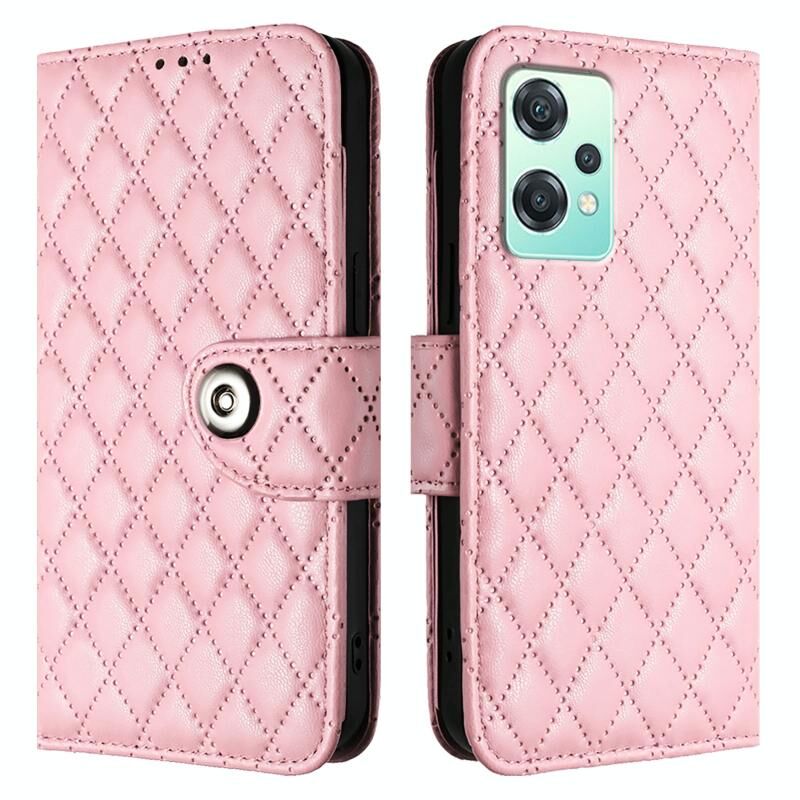 Για το OnePlus Nord 2 Lite Rhombic υφή Flip δερμάτινη θήκη τηλεφώνου με κορδόνι (ροζ)