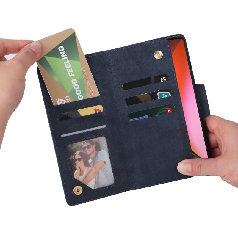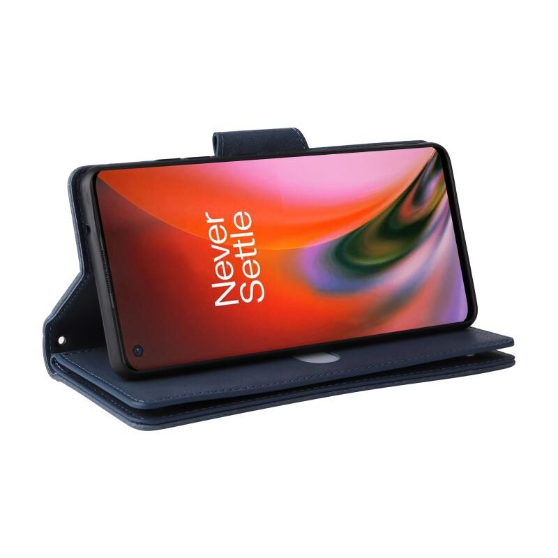 Για OnePlus Nord 2 Rivet πόρπη 9 κάρτες τρεις φορές δερμάτινη θήκη τηλεφώνου (μπλε)