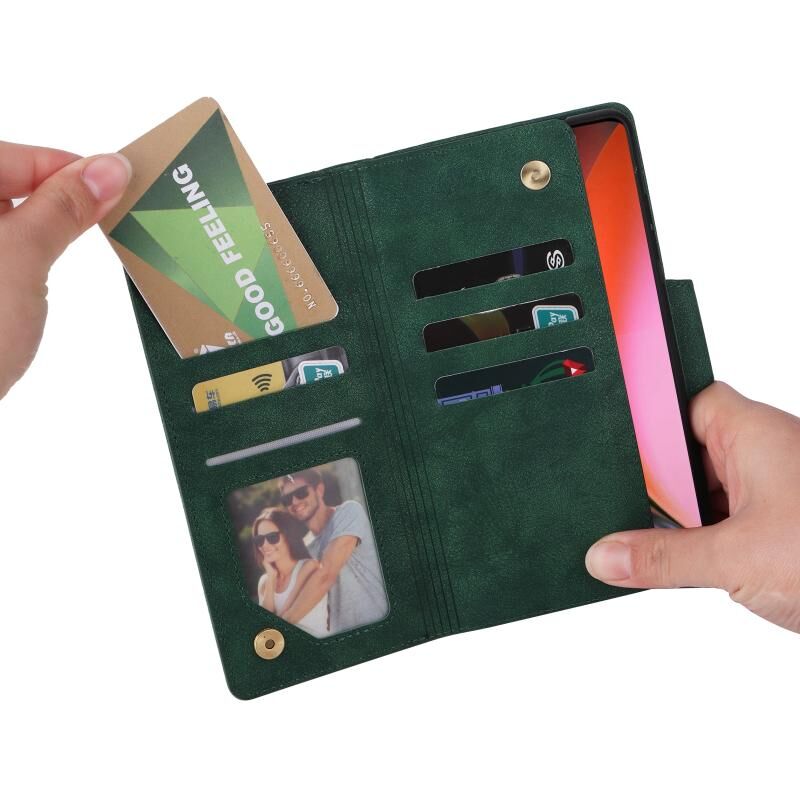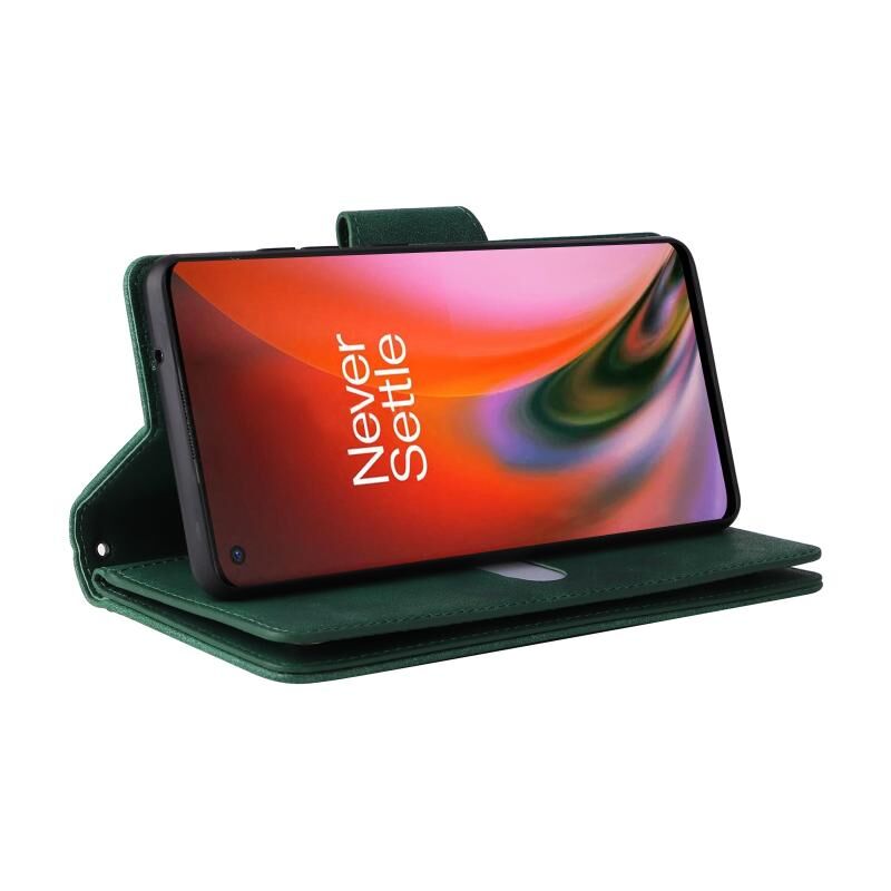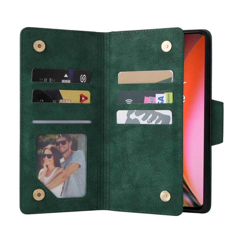 Για OnePlus Nord 2 Rivet πόρπη 9 κάρτες τρεις φορές δερμάτινη θήκη τηλεφώνου (πράσινο)