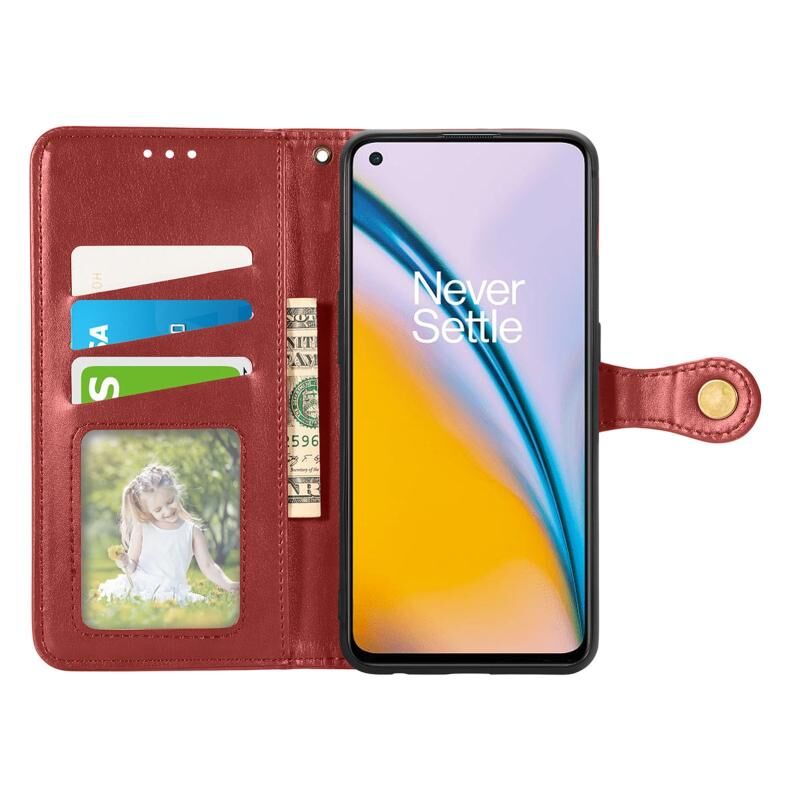 Για OnePlus Nord 2 Αμιγές χρώμα δερμάτινη θήκη τηλεφώνου πόρπη με κορδόνι & πλαίσιο φωτογραφιών & υποδοχή κάρτας & πορτοφόλι & λειτουργία Stand (κόκκινο)