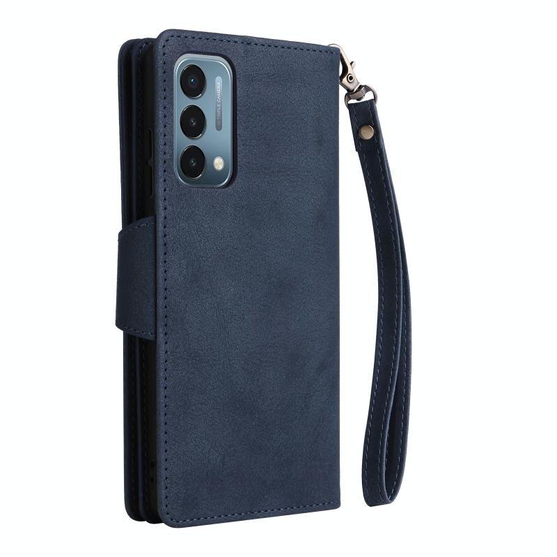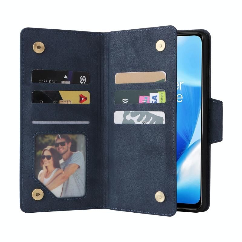 Για OnePlus Nord 200 5G Rivet πόρπη 9 κάρτες τρεις φορές δερμάτινη θήκη τηλεφώνου (μπλε)