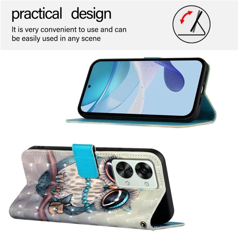For OnePlus Nord 2T 3D Painting Horizontal Flip Leather Phone Case(Grey Owl)