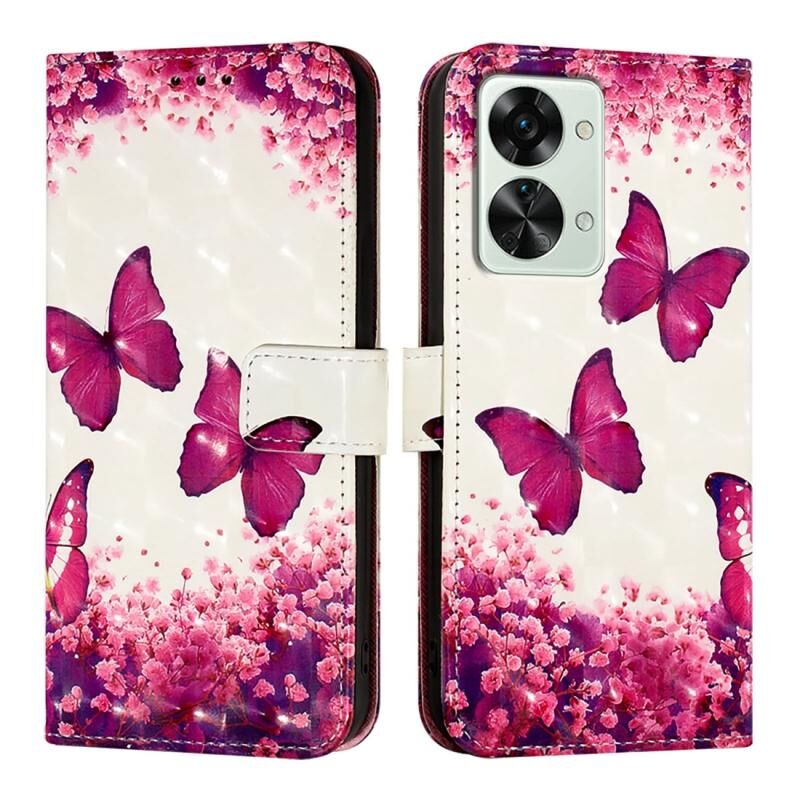 Θήκη τηλεφώνου από δέρμα με οριζόντιο άνοιγμα και τρισδιάστατη ζωγραφική για OnePlus Nord 2T (Ροζ Πεταλούδα)