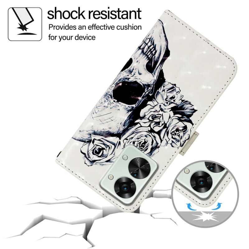 Θήκη τηλεφώνου από δέρμα με οριζόντιο άνοιγμα και τρισδιάστατη ζωγραφική για OnePlus Nord 2T (Κρανίο)