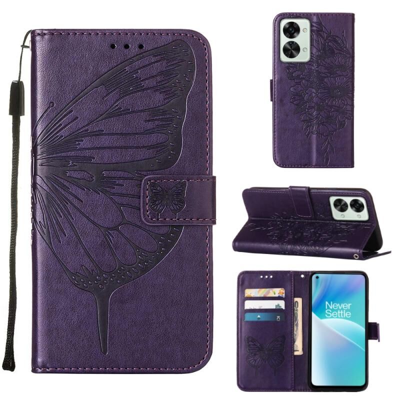 Θήκη τηλεφώνου από δέρμα με ανάγλυφο σχέδιο πεταλούδας για OnePlus Nord 2T 5G (Μωβ)