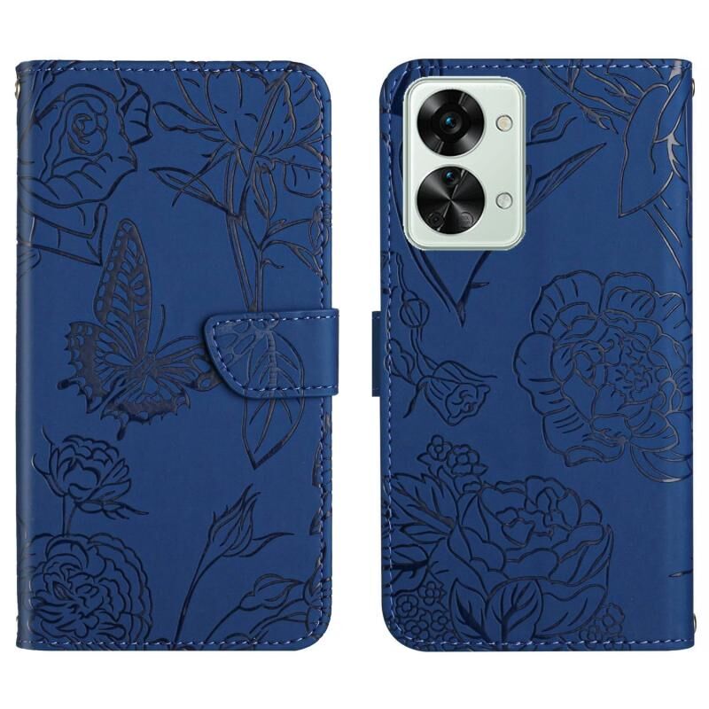 Θήκη τηλεφώνου από δέρμα με ανάγλυφο σχέδιο πεταλούδας και παιώνιας για OnePlus Nord 2T 5G (Κόκκινο)
