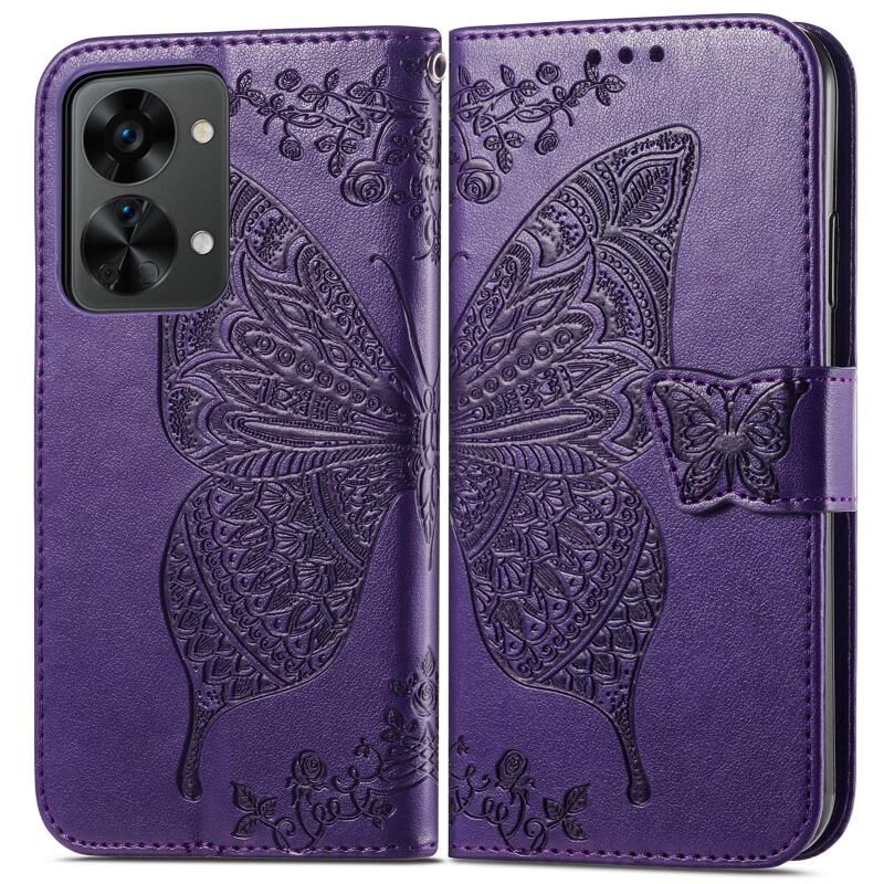 Θήκη τηλεφώνου OnePlus Nord 2T, δερμάτινη, οριζόντια, με ανάγλυφο σχέδιο πεταλούδας και λουλουδιών (Μαύρο)