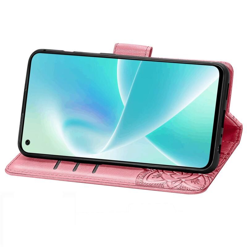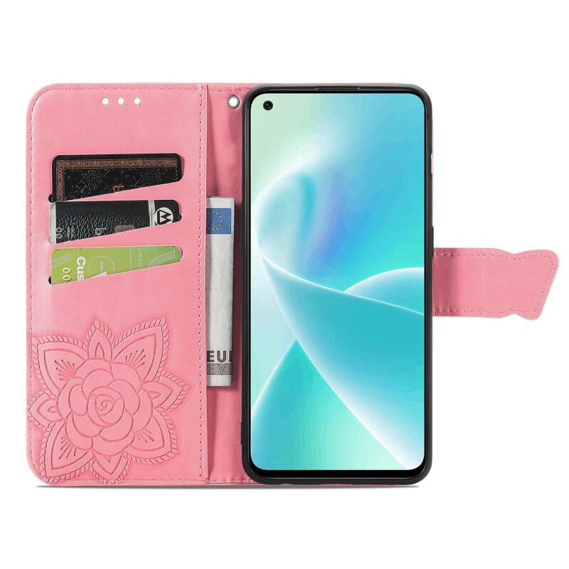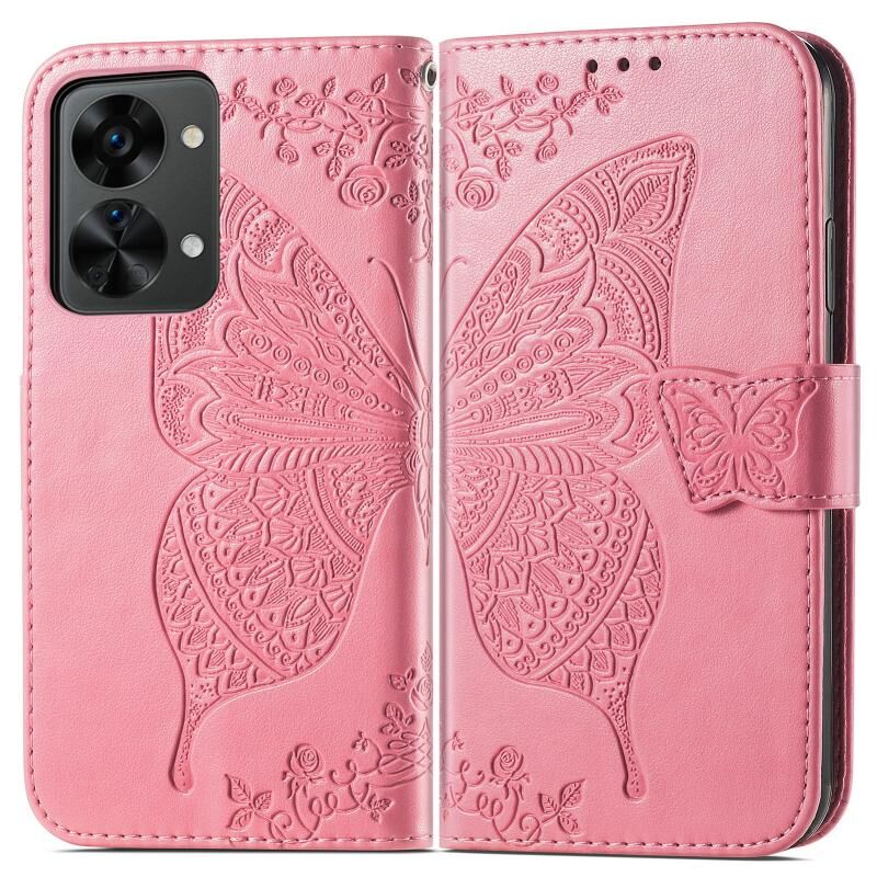 Θήκη τηλεφώνου OnePlus Nord 2T, δερμάτινη, οριζόντια, με ανάγλυφο σχέδιο πεταλούδας και λουλουδιών (Μαύρο)