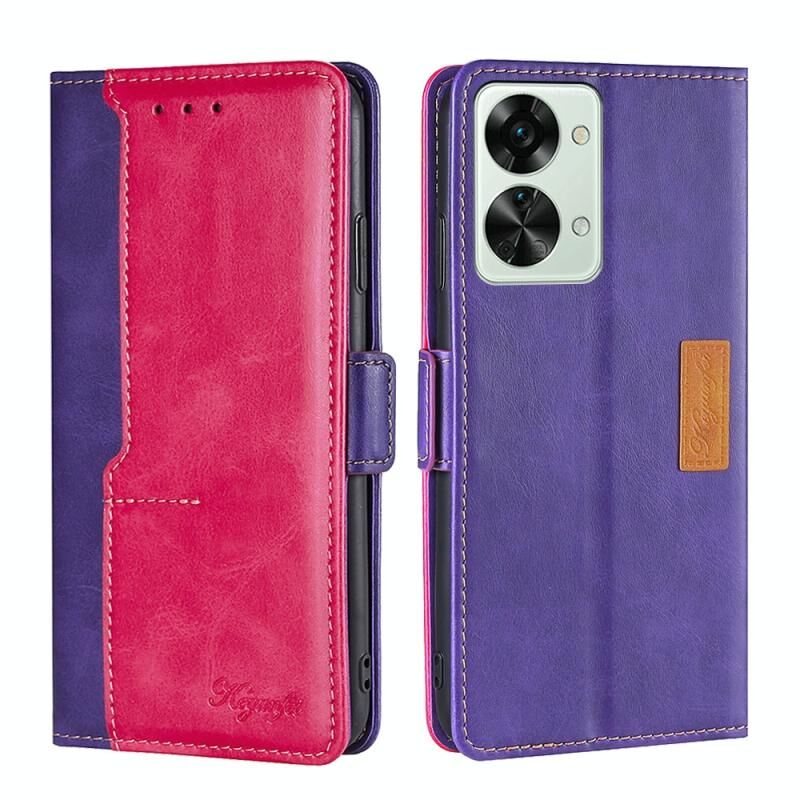 Για OnePlus Nord 2T αντίθεση χρώμα πλευρά πόρπη δερμάτινη θήκη τηλεφώνου υπόθεση (μωβ + Rose Red)