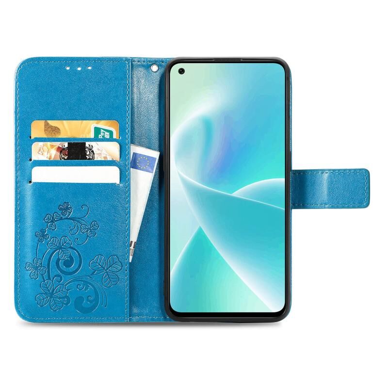 Για OnePlus Nord 2T τετράφυλλο κούμπωμα ανάγλυφο πόρπη δερμάτινη θήκη τηλεφώνου (μπλε)
