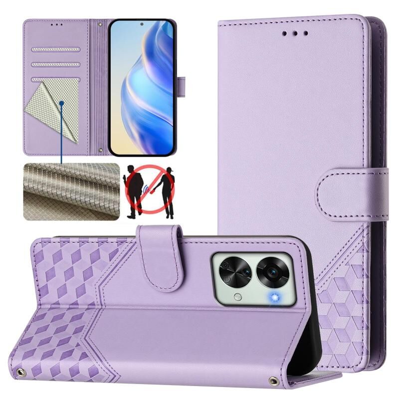 Για OnePlus Nord 2T Honeycomb ανάγλυφο RFID δερμάτινη θήκη τηλεφώνου (Light Purple)