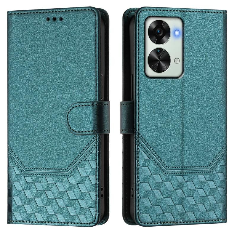 Για OnePlus Nord 2T Honeycomb ανάγλυφο RFID υπόθεση τηλεφώνου δέρμα (Peacock Green)