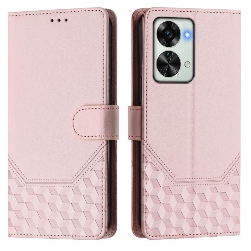 Για OnePlus Nord 2T Honeycomb ανάγλυφο RFID δερμάτινη θήκη τηλεφώνου (ροζ)