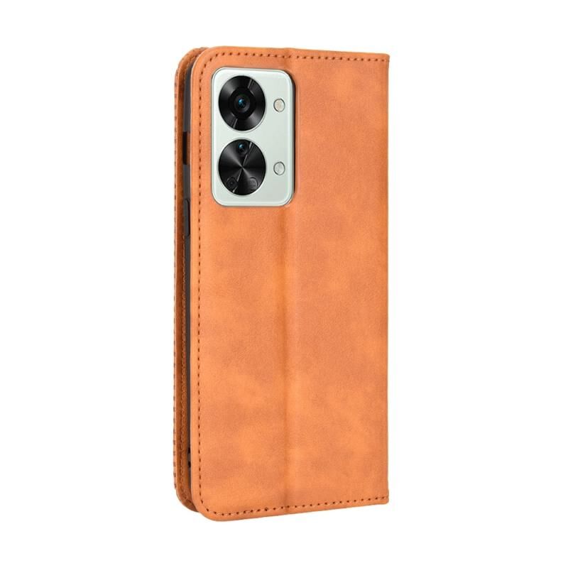 Για OnePlus Nord 2T Μαγνητική πόρπη Ρετρό τρελό άλογο δερμάτινη θήκη τηλεφώνου (καφέ)