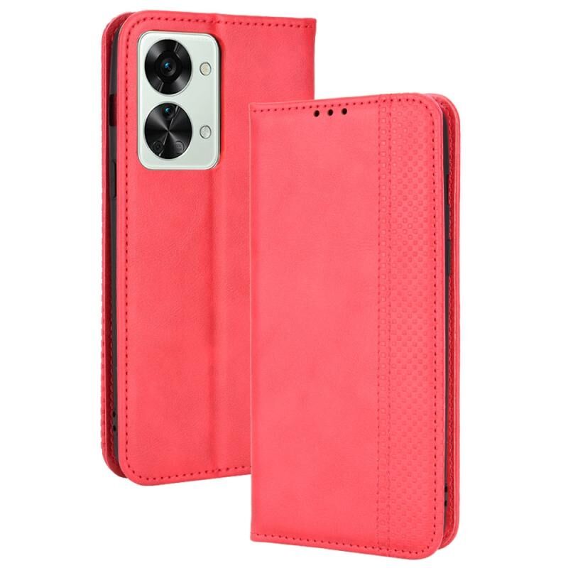 Για OnePlus Nord 2T Μαγνητική πόρπη ρετρό τρελό άλογο δερμάτινη θήκη τηλεφώνου (κόκκινο)