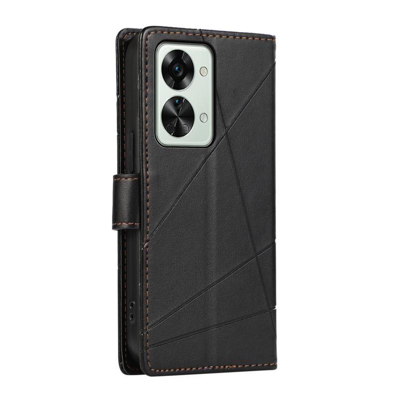 Θήκη τηλεφώνου OnePlus Nord 2T από γνήσιο δέρμα PU με ανάγλυφη υφή και λεπτομέρειες γραμμής (Μπλε)