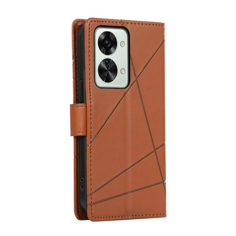 Θήκη τηλεφώνου OnePlus Nord 2T από γνήσιο δέρμα PU με ανάγλυφη υφή και λεπτομέρειες γραμμής (Μπλε)