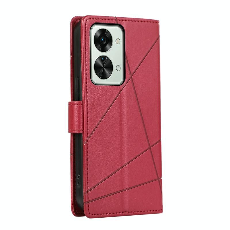 Θήκη τηλεφώνου OnePlus Nord 2T από γνήσιο δέρμα PU με ανάγλυφη υφή και λεπτομέρειες γραμμής (Μπλε)