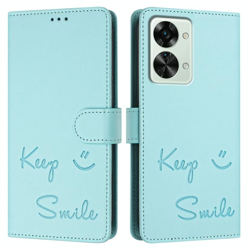 Για OnePlus Nord 2T Χαμόγελο ανάγλυφο RFID δερμάτινη θήκη τηλεφώνου (Mint Green)