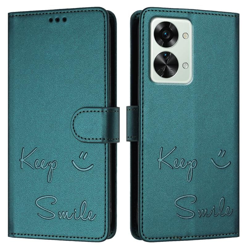 Για OnePlus Nord 2T Χαμόγελο ανάγλυφο RFID δερμάτινη θήκη τηλεφώνου (Peacock Green)