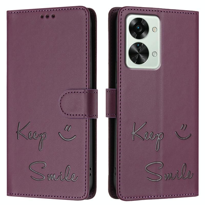 Για OnePlus Nord 2T Χαμόγελο ανάγλυφο RFID υπόθεση τηλεφώνου δέρμα (Violet)