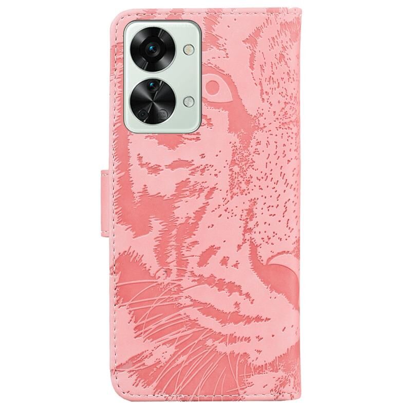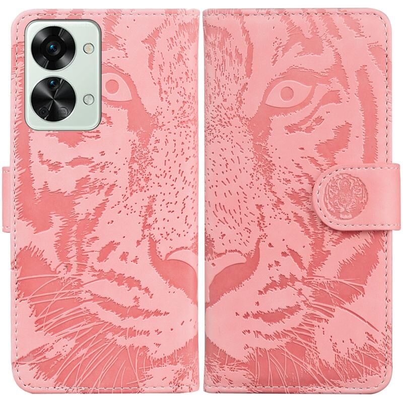 Για OnePlus Nord 2T Tiger ανάγλυφο μοτίβο οριζόντια Flip δέρμα τηλέφωνο υπόθεση (ροζ)