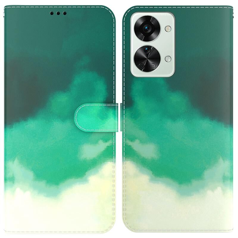 Για OnePlus Nord 2T νερομπογιά μοτίβο οριζόντια Flip δέρμα τηλέφωνο υπόθεση (Cyan Green)
