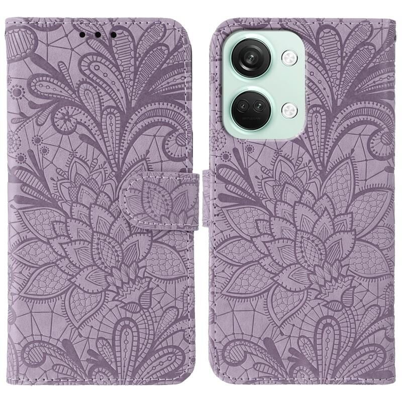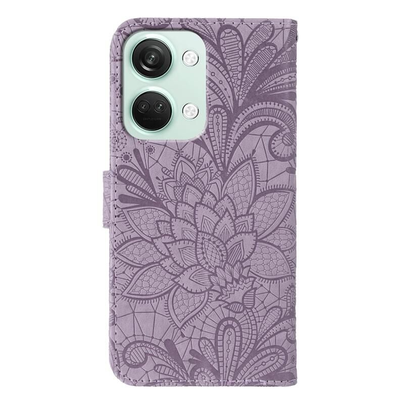 Θήκη τηλεφώνου από δέρμα με ανάγλυφο σχέδιο δαντέλας λουλουδιών για OnePlus Nord 3 5G / Ace 2V (Γκρι)