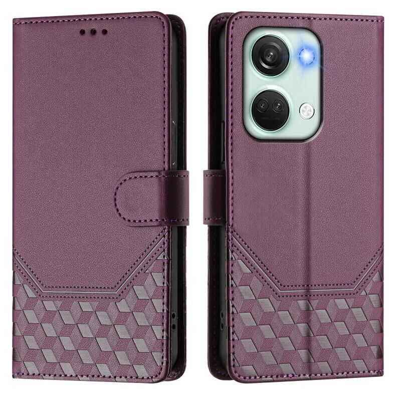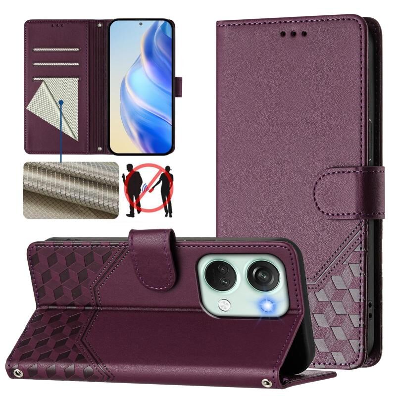 Για OnePlus Nord 3 / Ace 2V Honeycomb ανάγλυφο RFID δερμάτινη θήκη τηλεφώνου (Violet)