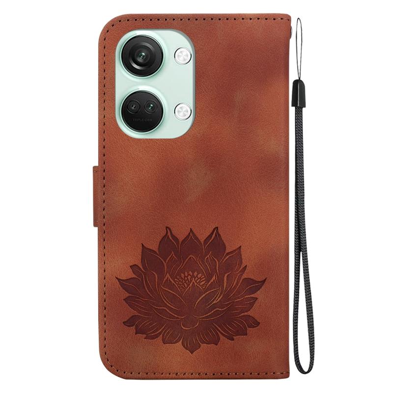 For OnePlus Nord 3 / Ace 2V Lotus Embossed Leather Phone Case(Brown)