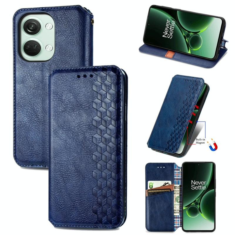 For OnePlus Nord 3 Cubic Grid Pressed Magnetic Leather Phone Case(Blue)
