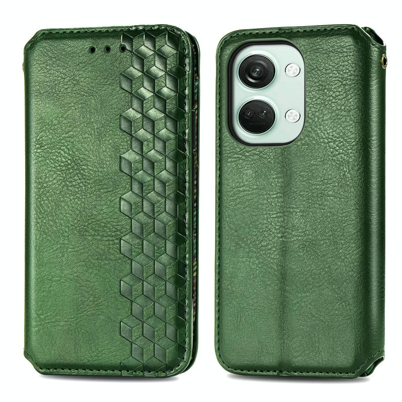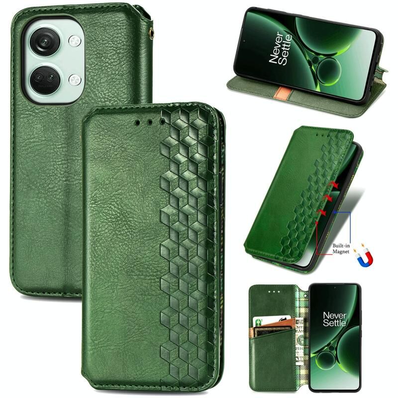 For OnePlus Nord 3 Cubic Grid Pressed Magnetic Leather Phone Case(Green)