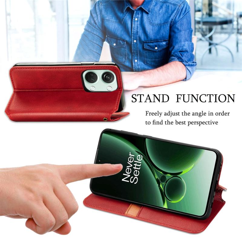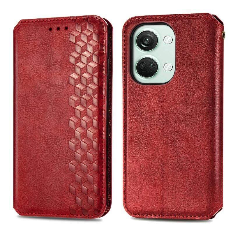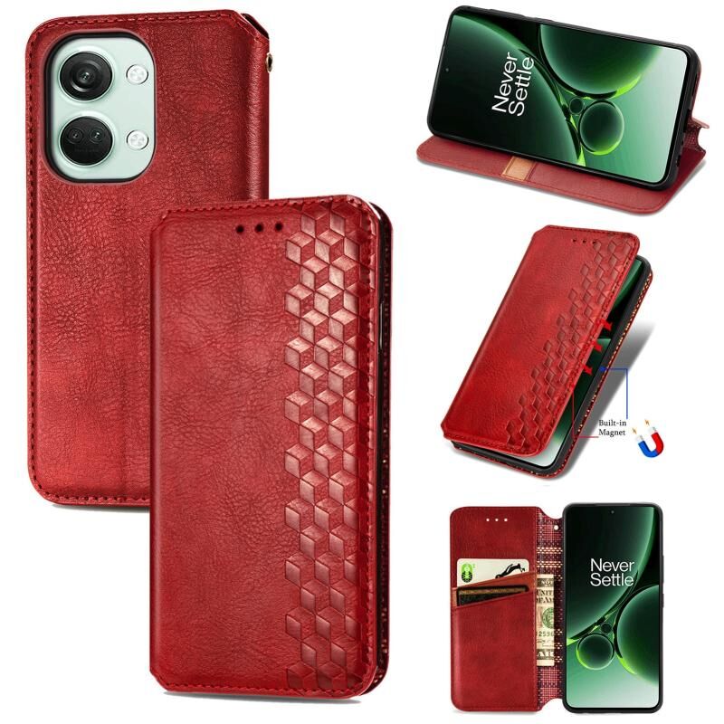 For OnePlus Nord 3 Cubic Grid Pressed Magnetic Leather Phone Case(Red)