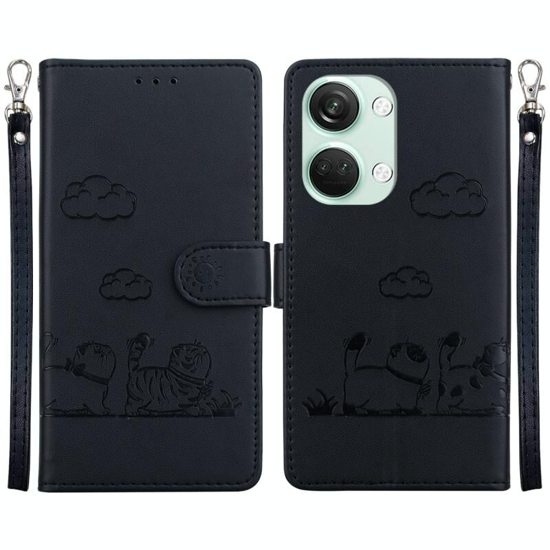 Θήκη τηλεφώνου από δέρμα με χαριτωμένες γάτες για OnePlus Nord 3 (Χρυσό Ρόδι) με προστασία RFID.