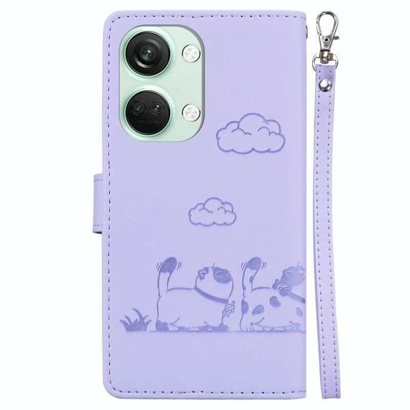 Θήκη τηλεφώνου από δέρμα με χαριτωμένες γάτες για OnePlus Nord 3 (Χρυσό Ρόδι) με προστασία RFID.