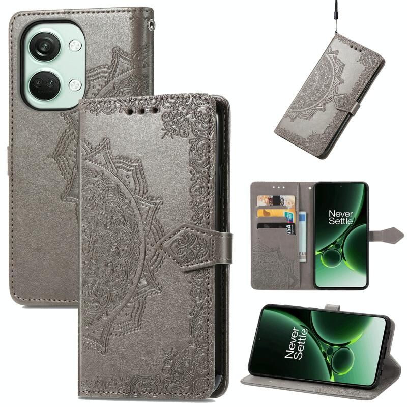 Θήκη τηλεφώνου από δέρμα με ανάγλυφο σχέδιο Mandala Flower για OnePlus Nord 3 (Μπλε)
