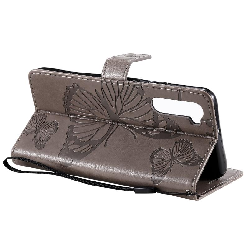 For OnePlus Nord 3D Butterflies Embossing Pattern Horizontal Flip Leather Case with Holder & Card Slot & Wallet & Lanyard(Grey)