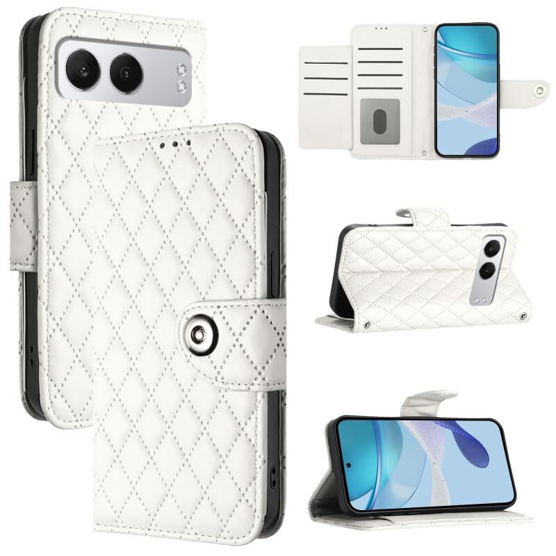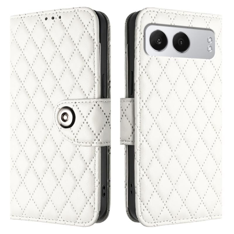 Για το OnePlus Nord 4 5G Rhombic υφή Flip δέρμα τηλέφωνο υπόθεση με κορδόνι (λευκό)